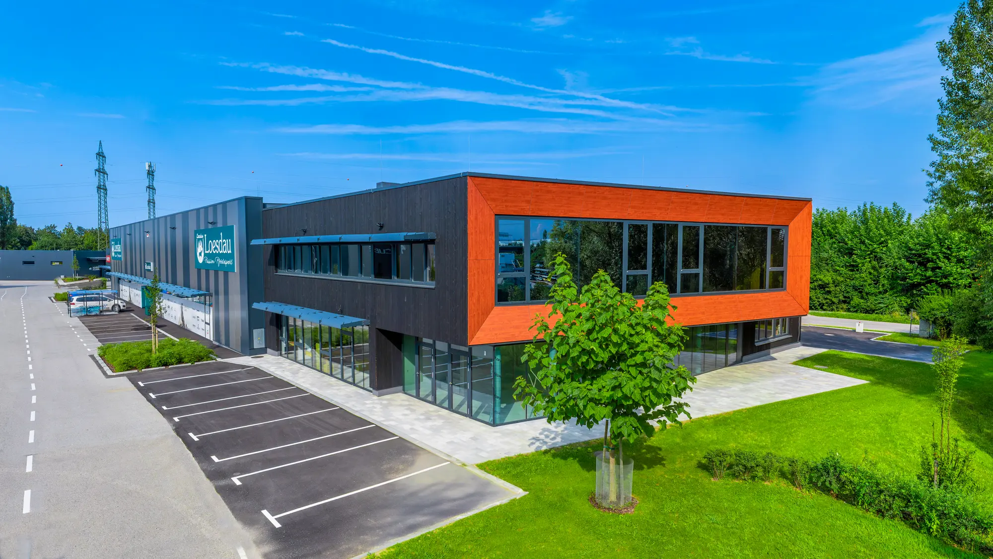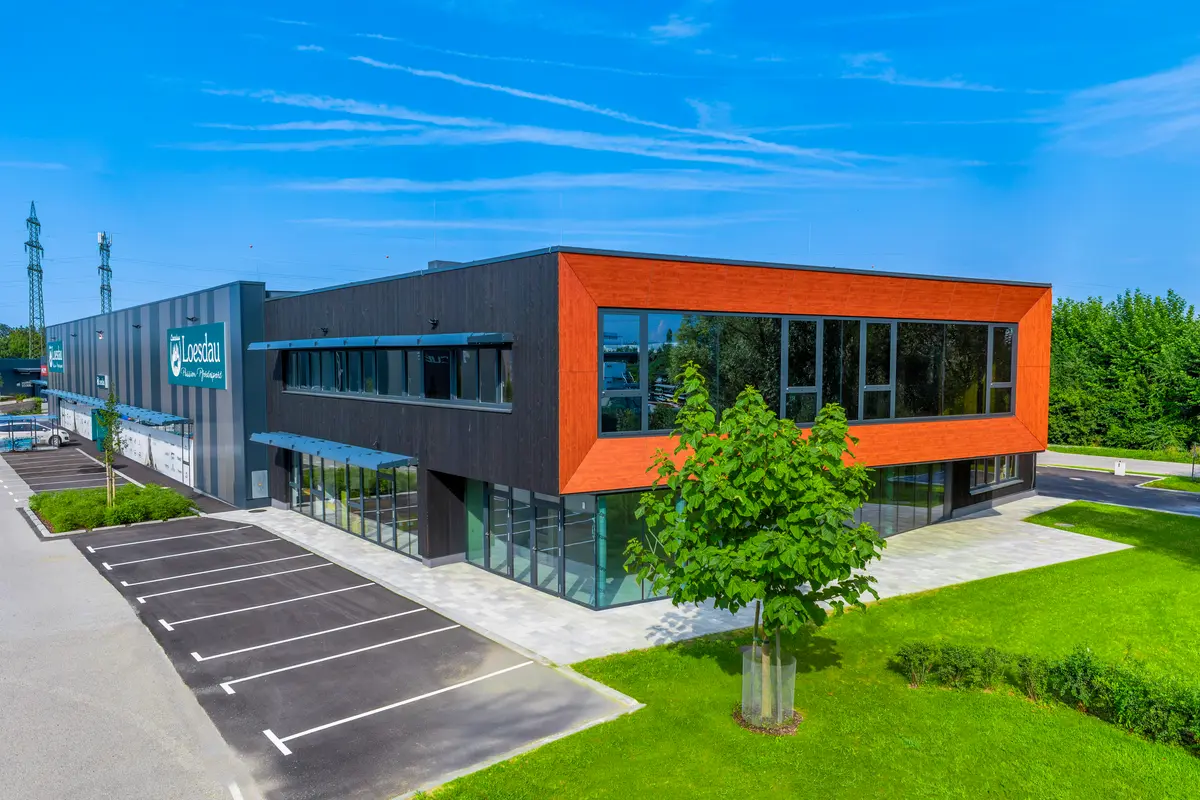 Das 320 m² große Betriebsgebäude in Holzbauweise im ATC-Business-Park-Nord in St. Pölten kann gesamt oder geschossweise gemietet werden: